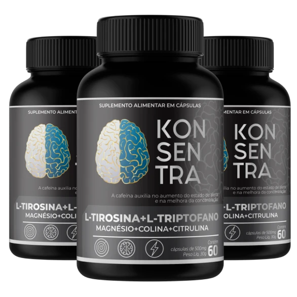 Konsentra combina os melhores ativos para performance cognitiva em uma só cápsula. A base da fórmula gira em torno da L-Tirosina e da Citrulina, dois ativos que atuam de forma sinérgica para turbinar sua concentração, sua memória e sua clareza mental.